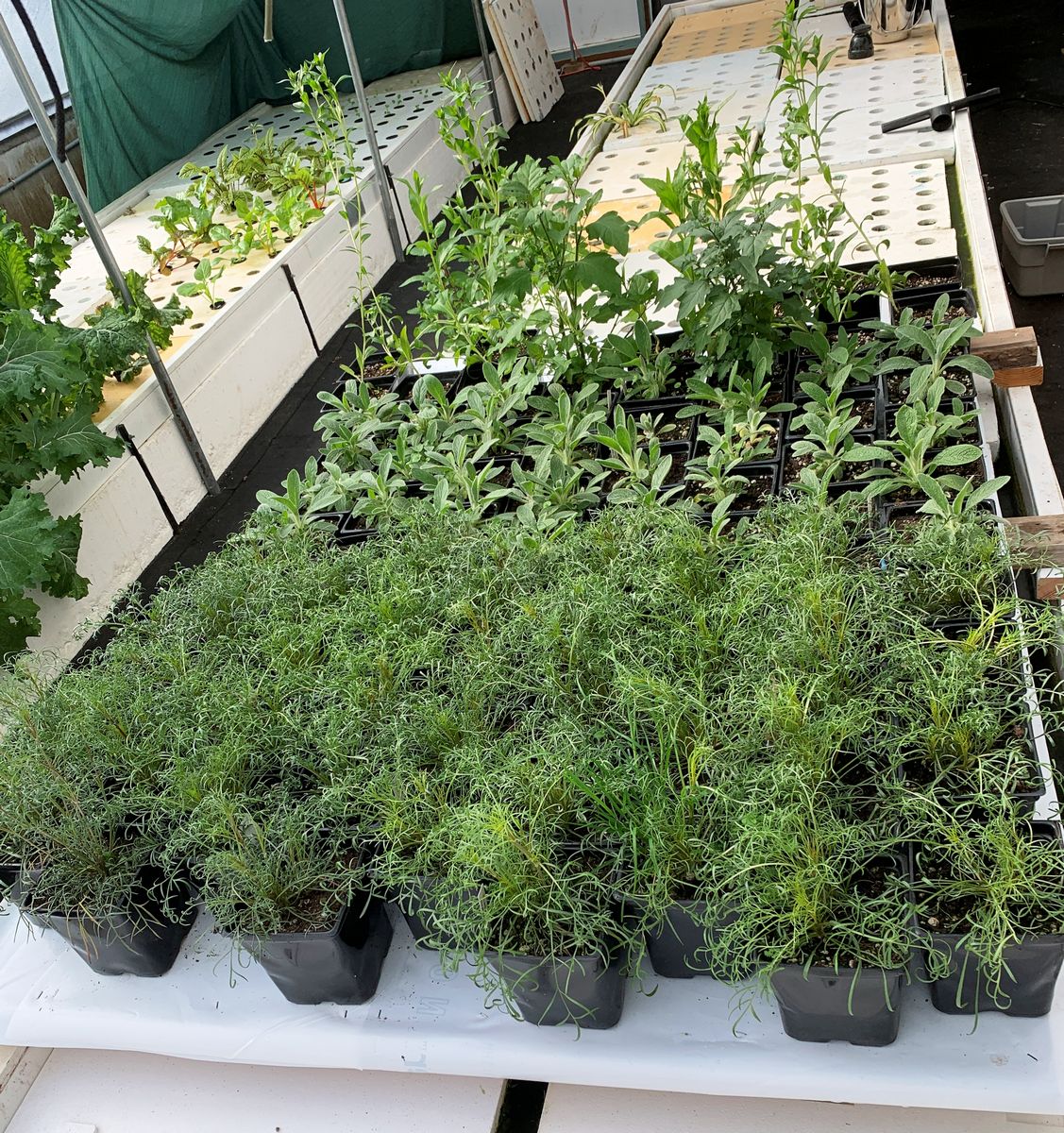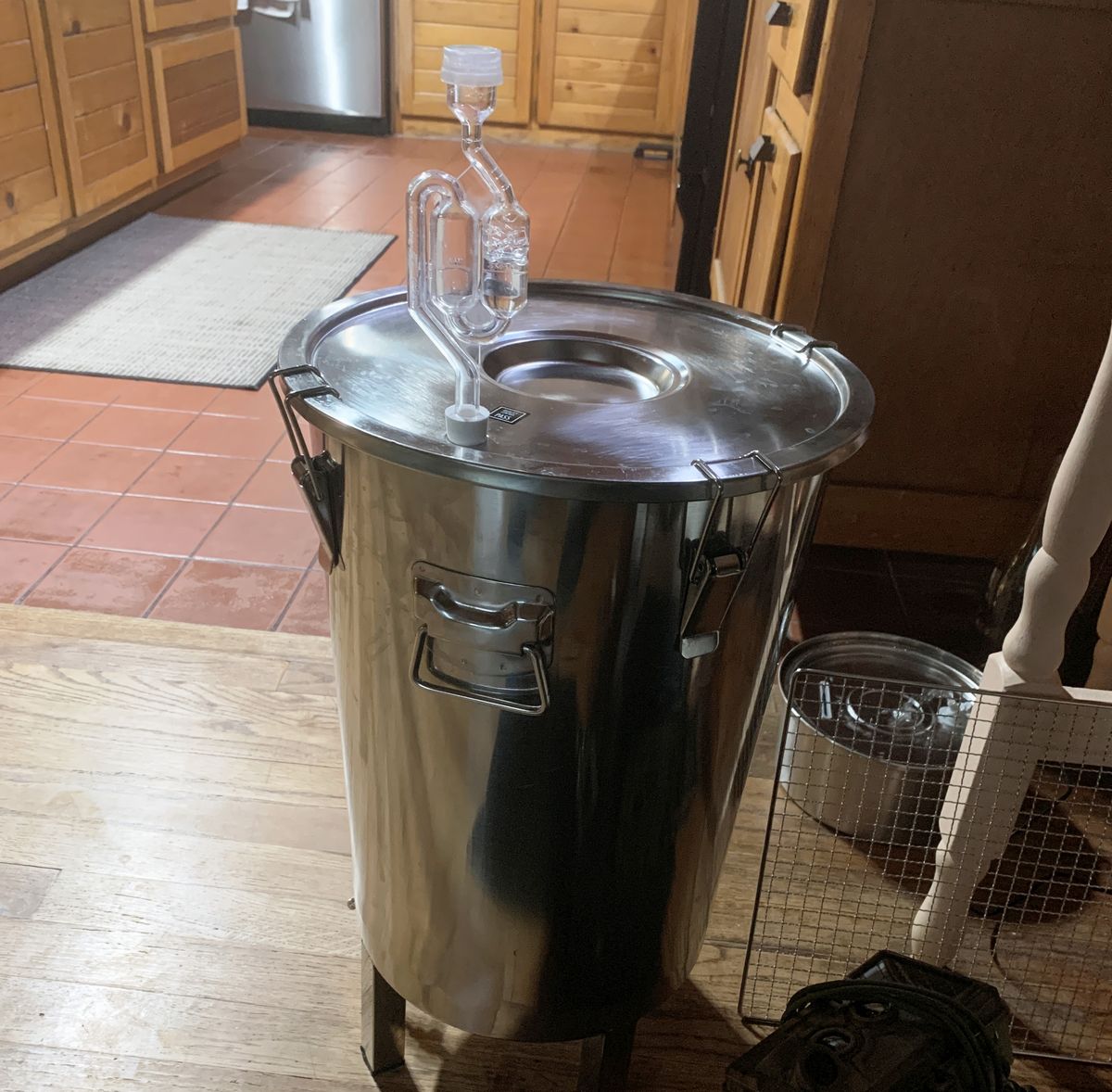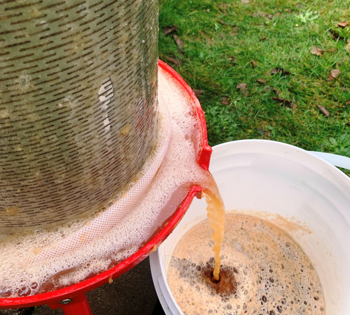 The over-wintering pots of Greenthread and Mountain Tea are looking great, along with a couple Chichiquelite huckleberry plants grown from seed (the couple taller ones in the background). After we pressed the apples and pasteurized the juice, we tossed it in the fermenter with yeast to start our 2025 hard cider.