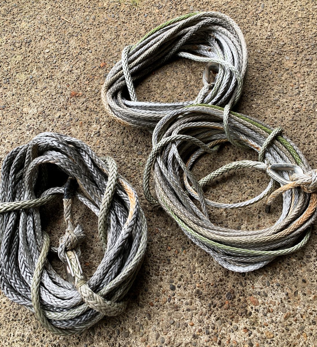 We were gifted some used Dyneema-type rope and a couple pulleys that were replaced on a research vessel. They are slated to be used to take down some Alders that, without ropes, would fall on our house when cut ... of in a windstorm. That project won't get underway untill at least mid-winter.