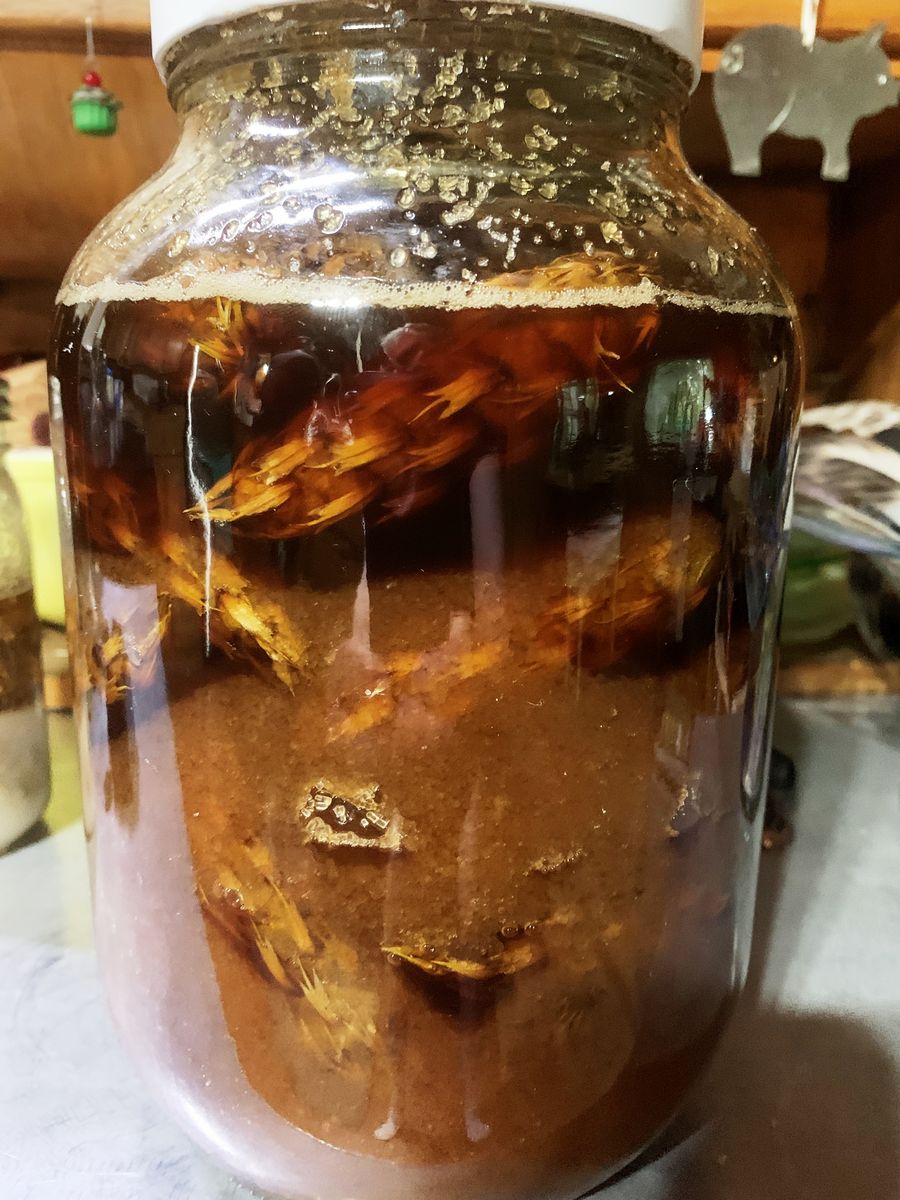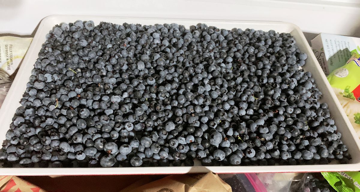 This is what the gallon jar of mugolio is looking like now. Freezing lots more blueberries. We did get some fry from the outdoor trough again this year, so I have been trying to collect up a bunch before the bigger fish eat them. The tray in that tank is holding those that I've been able to snag. They will be released into that tank. The tray is only temporary to be able to see them more easily to see if they are surviving OK.
