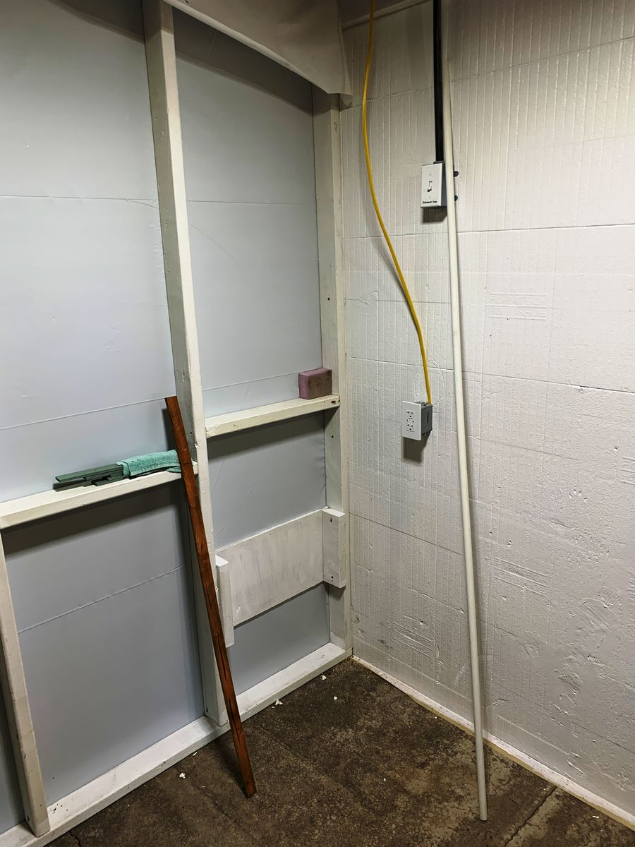 The Greek Mountain and Greenthread plants seem happy enough in the hoop house. Building a passthrough for electric and water into the fruiting room through the fabric wall.