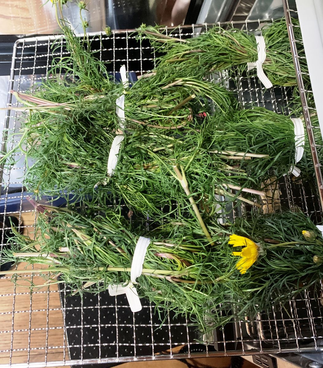 The first pic below shows some Greenthread or Navajo Tea on a dehydrator rack for drying. If you recall, I was trying to winter over about 40 pots of it in the Aquaponics house. The plants were doing just fine, but I failed to take into consideration the amount of moisture and tight weave of the grass-like stems of these plants, and did not provide enough space and air circulation to keep them happy. Some started to get grey mold and I even found some aphids (who knows where THEY come from in the cold winter months!). So I decided I needed to euthanize the lot of them to protect the other plants in the aqua house. All of them got tossed outside, but I did manage to save a few of the forty plants to dry for tea that were on the outside edges and had not yet succumbed. Interestingly, Greenthread can withstand very low temperatures if you can believe what you can find online. The Greek Mountain Tea plants are much less susceptible to both the mold and to aphids. But I removed all of those, left them out in the freezing night air for a couple days, then turned each one upside down and submerged the tops in a Neem oil solution. Hopefully, with the added air movement from 24 hour fans, they will be fine. They are perennials, so I could leave them outside, but because they are still in pots, it is possible their roots might freeze. I don't know for sure, but on such small plants, that may likely kill them all. So, I am hoping for the best inside for now.
