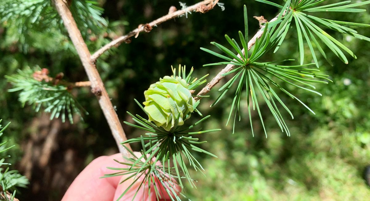 One of the Tamarack fir tree branches was hanging down in front of the orchard entrance so I clipped it back. But I noticed, for the first time, that the tree had cones, and interesting ones at that. I ended up looking up information about the Tamarack and found that it was useful for tea and can possibly be a home remedy to help with a number of ailments. So we gathered up some of the twigs and needles from the trimmings and dried them for future tea tastings.