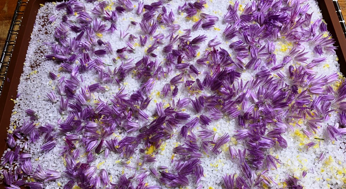 Stephanie also made a flavored salt using chive flowers and lemon zest.