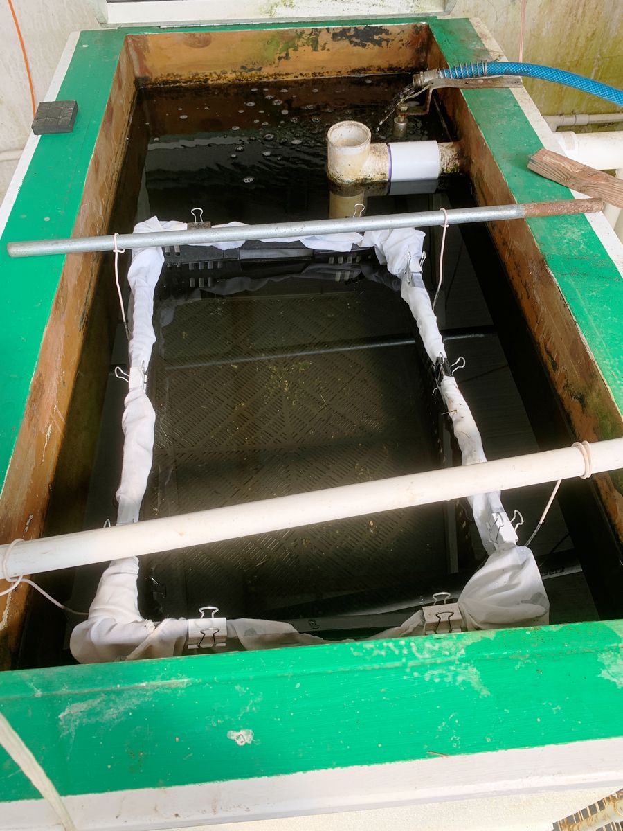This is what the gallon jar of mugolio is looking like now. Freezing lots more blueberries. We did get some fry from the outdoor trough again this year, so I have been trying to collect up a bunch before the bigger fish eat them. The tray in that tank is holding those that I've been able to snag. They will be released into that tank. The tray is only temporary to be able to see them more easily to see if they are surviving OK.