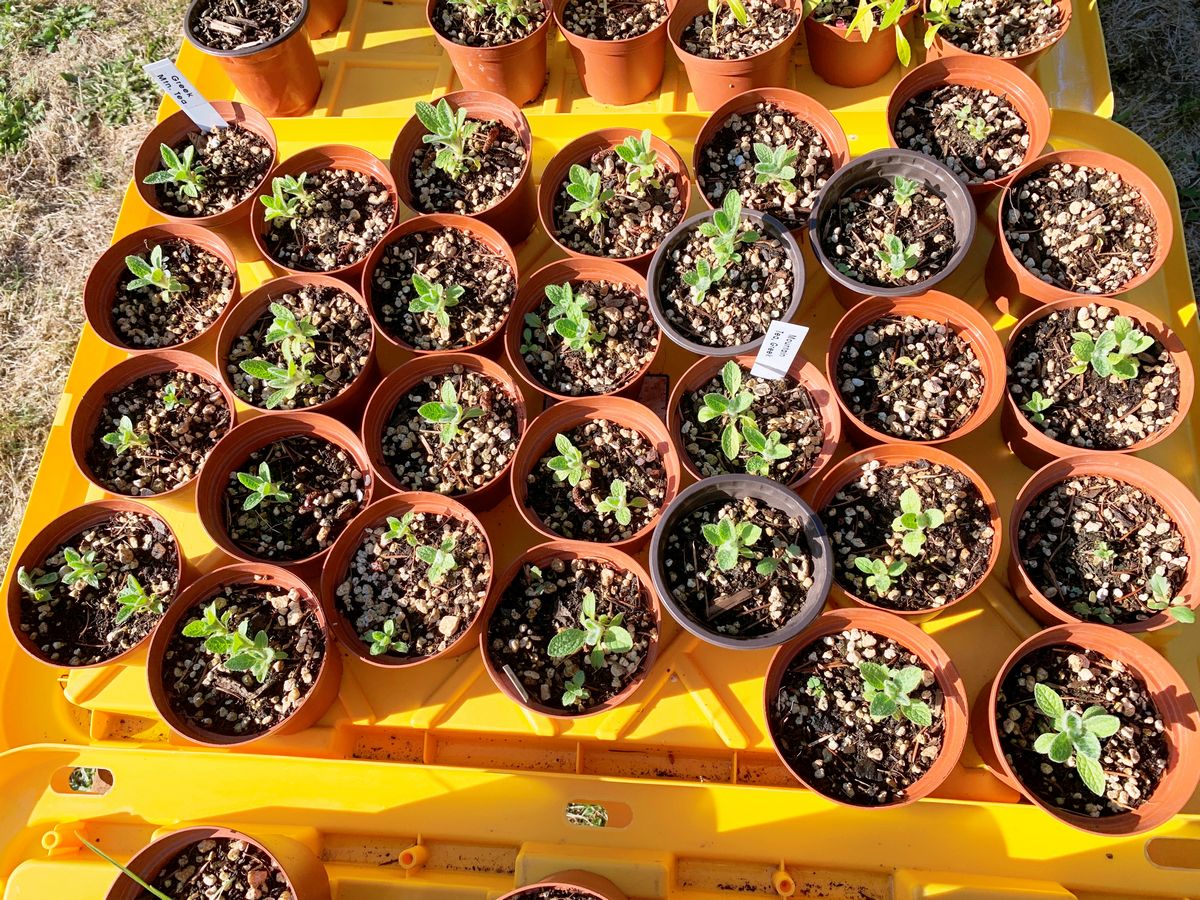 With a bit of TLC, the tea plants in the protected bed in the orchard seem to be doing well, so far. Below those are the small pots of Greek Mountain Tea and Greenthread that we planted late and hope to support through the fall, or maybe winter. The Greek Mountain Tea should do OK as it is a perennial, but the Navajo Tea might be more problematic. It can sustain pretty low temps, but is closer to an annual, setting seeds each year. So, an experiment.